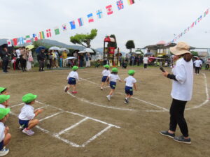 先日、運動会が行われました✨子ども達が登園する時間にぱらぱら…と雨が降り始め、どうしようか…と考えましたが、子ども達が運動会に期待をもって取り組めるよう、天候に合わせプログラムの順番を変更したり、室内で出来る競技は室内で出来るよう準備をし、開催しました🏃‍♀️