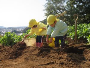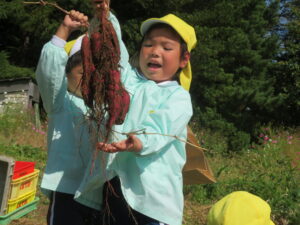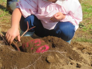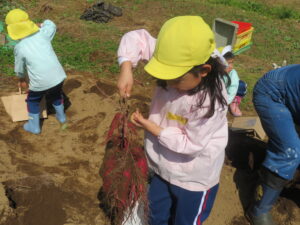 いよいよ収穫する日がやってきて、年長組でさつまいも掘りをしました😊