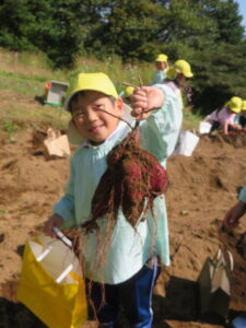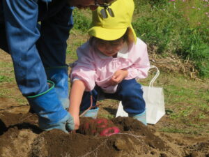 大きなお芋や小さな可愛いお芋まで、一つも残さず、土の中から頑張って掘り出しました!