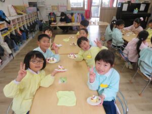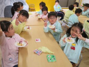 ケーキのお味ももちろん「おいしい~‼」笑顔いっぱいのクリスマスパーティ🎄大満足の子ども達でした😄