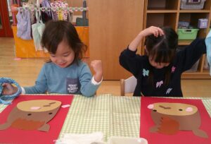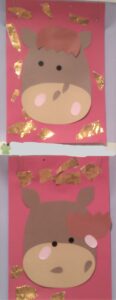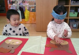 今年は、午年🐴 すずめ組のみんなは、午のお顔を製作するのに、なんと!福笑いに挑戦しました(^o^)