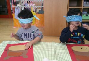 目隠しして、おめめはここかな?鼻は?お口は?たてがみは?
