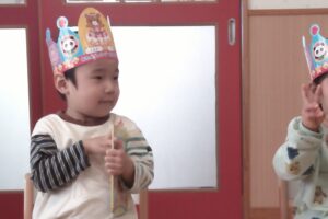 「3歳になりました。」と上手に3本の指を立ててみんなに見せてくれました。