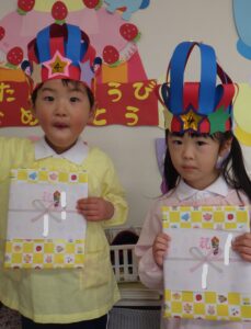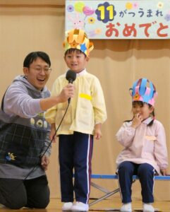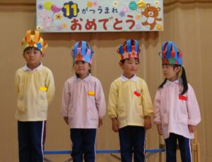 ホールで11月生まれのお友だちのお誕生をお祝いしました。