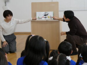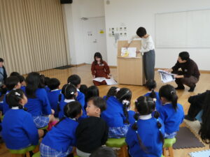 11月6日、やはパーク主催の『IBCアナウンサーによる朗読会』にお招きをいただきました。奥村アナ、今井アナ、井丸アナがいらっしゃり、『ちゅんた きっぷ かった』や『おもちのおふろ』、『グッスリホテルへようこそ』、『おおきなかぶ』のお話を読んでいただきました!アナウンサーの方の読み聞かせに心を奪われながら、楽しく絵本を見ていた子ども達でした!