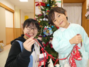12月生まれのお誕生会がありました(^o^)12月と言えば、クリスマスですね。玄関には、クリスマスツリーがキラキラと耀いています。サンタさんとリースは、けろちゃんルームの年長さん達の力作です(*^^)vいつも子ども達を出迎え、送り出しています🎄