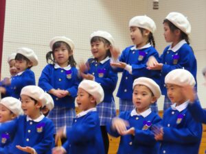 「歌と楽器遊び」では、年中組で力を合わせて披露しました。いつもの元気いっぱいの歌を披露することが出来ました‼『アンパンマンマーチ』ではお家の方にも「バイバイキ~ン‼」